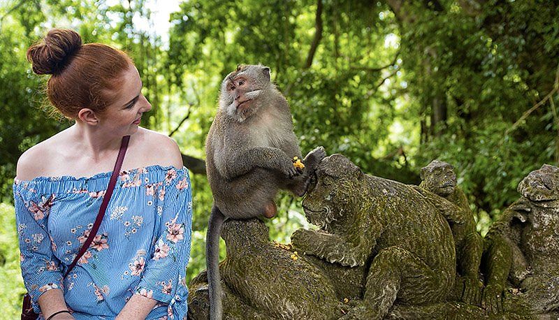 The Sacred Monkey Forest is another necessary stop while youâre in Ubud. There are literally hundreds of monkeys running around these ancient temples, and as long as you have a banana to offer, you'll be sure to get an adorable photo with your new furry friends!