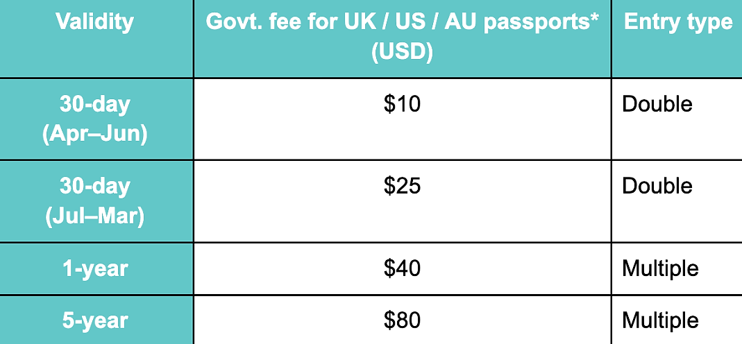 *Fees vary by nationality – check the full chart when you apply