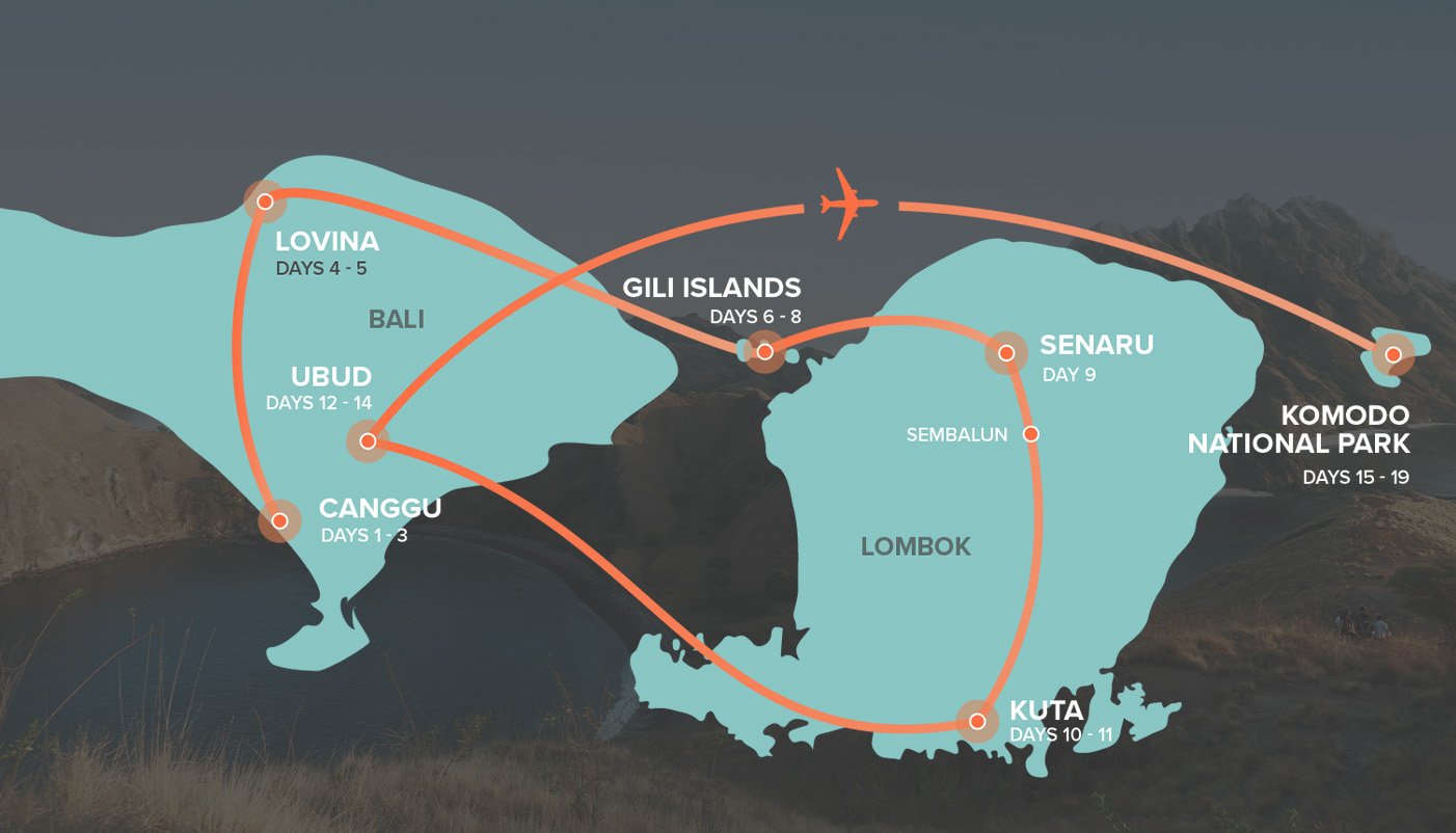 This is a backpacker style trip, aimed at those happy to stay in nice budget 2-3 star style accommodation. It also includes an exclusive 2 night stay at INTRO's stunning private villa in Lovina with multi-share rooms of 4 - 6 beds and also includes some slightly more rugged and authentic experiences such as a traditional stay in the foothills of Mount Rinjani and a liveaboard boat trip in Komodo.