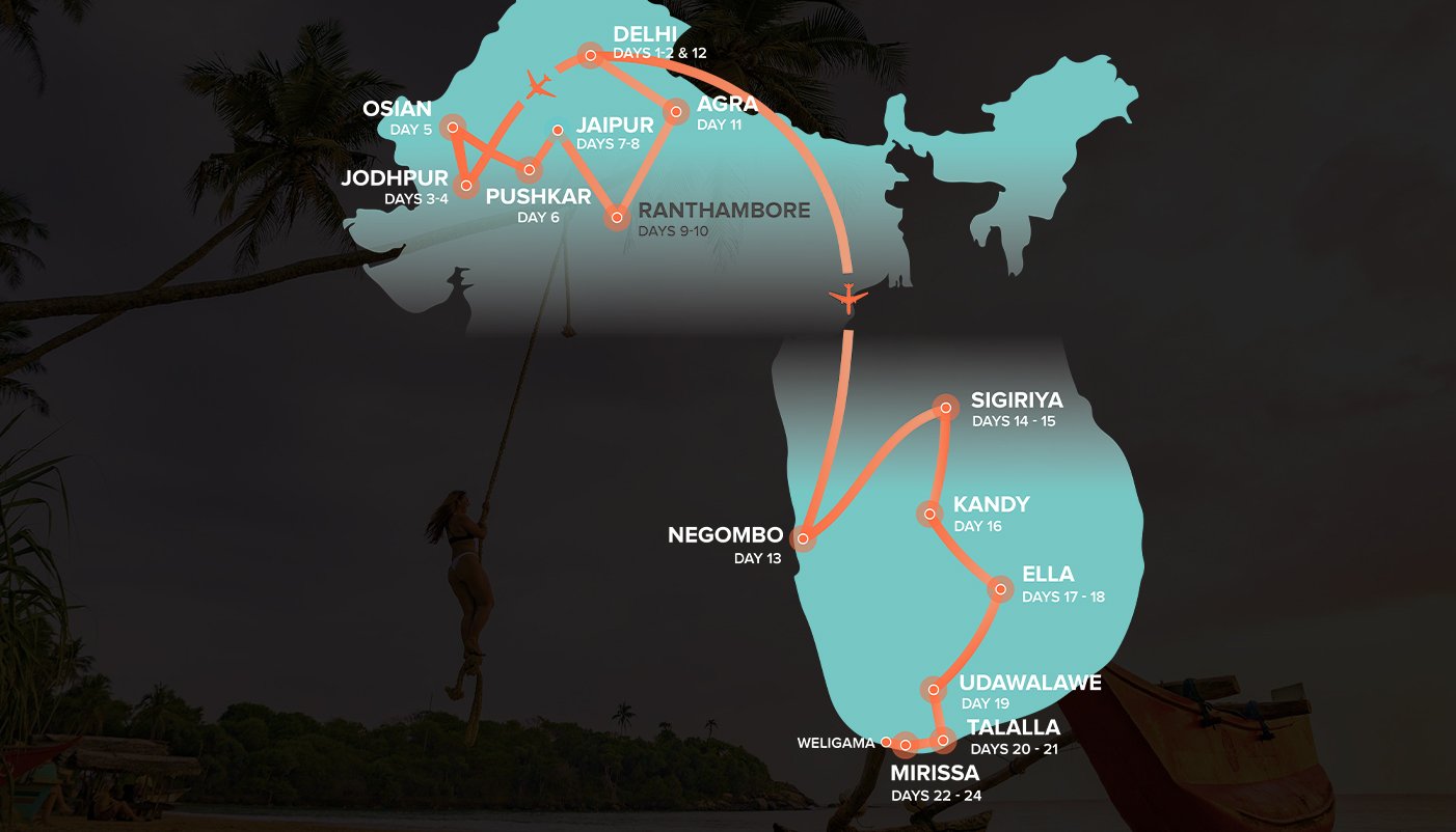 Check out the #SmallChange you'll be part of while doing this tour. Click hereSri Lanka is hot year-round with varying seasons and occasional rain, making it a great destination anytime. India, with its diverse regions, is also travel-friendly year-round, but the best time to visit Northern India is from September to May to avoid the hottest and wettest periods.